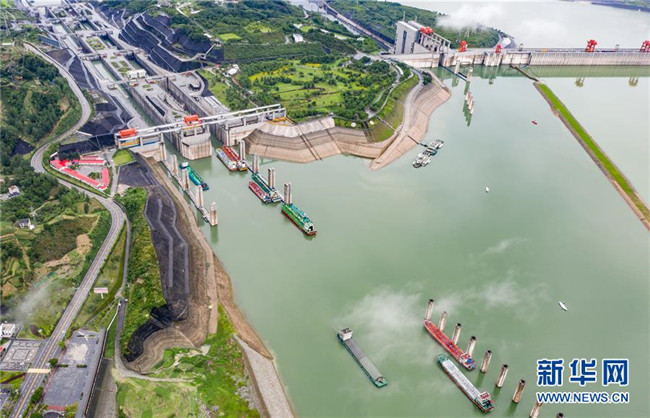 6月17日,船舶有序通過三峽五級船閘。新華社發(fā)(鄭家裕 攝)