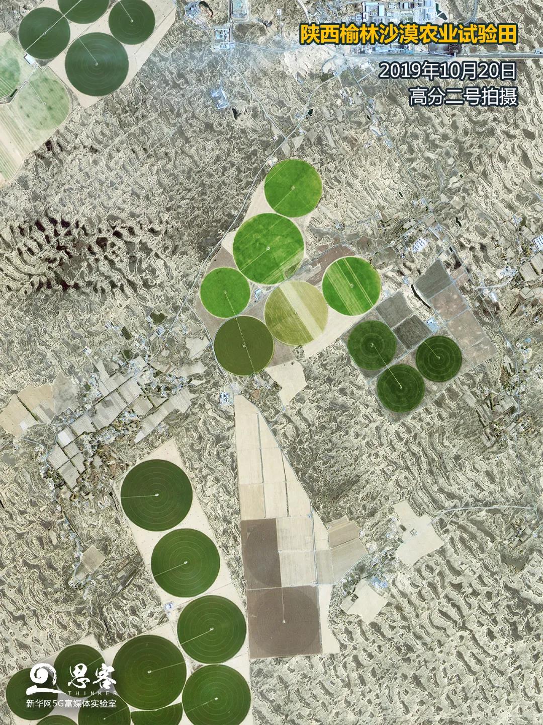 ▲圖為衛(wèi)星拍攝的陜西榆林沙漠農業(yè)試驗田。衛(wèi)星數據來源:高分二號