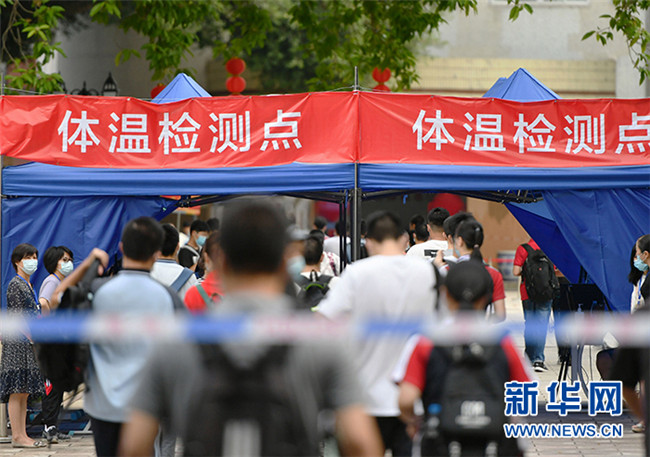 7月7日,在福州第二中學(xué)考點(diǎn),考生進(jìn)入考場(chǎng)前有序通過(guò)體溫檢測(cè)點(diǎn)。 當(dāng)日,2020年高考拉開(kāi)帷幕。 新華社記者 魏培全 攝