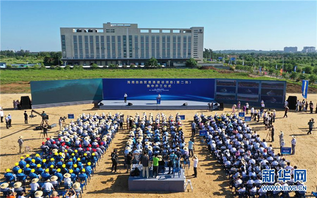 這是7月13日拍攝的海南自由貿(mào)易港建設(shè)項目(第二批)集中開工儀式現(xiàn)場(無人機(jī)照片)。 新華社記者 郭程 攝