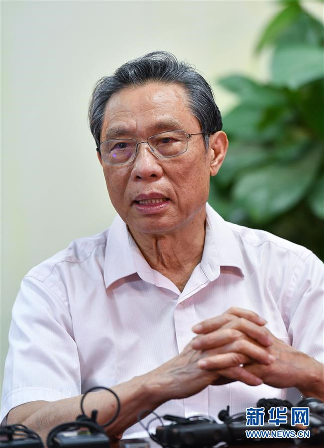 29日在廣州醫(yī)科大學附屬第一醫(yī)院,中國工程院院士、國家呼吸系統(tǒng)疾病臨床醫(yī)學研究中心主任、廣州醫(yī)科大學呼吸內(nèi)科教授鐘南山接受新華社采訪,談對香港疫情形勢的判斷,以及對防控疫情的建議。