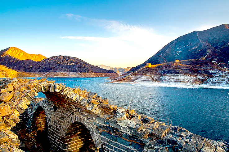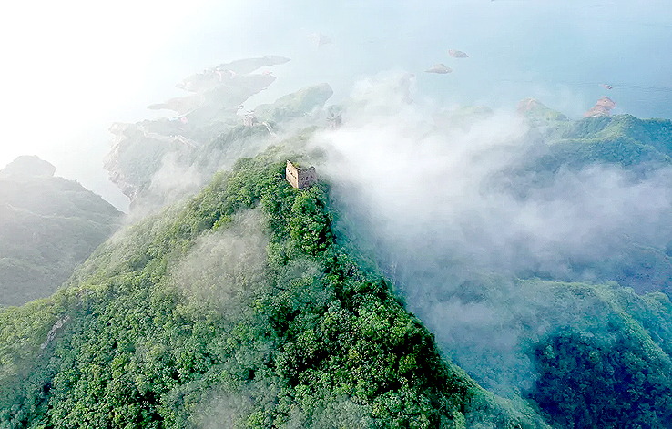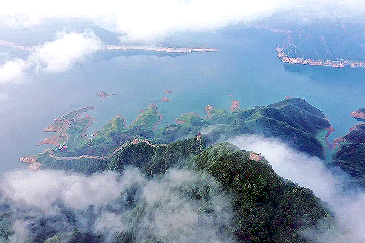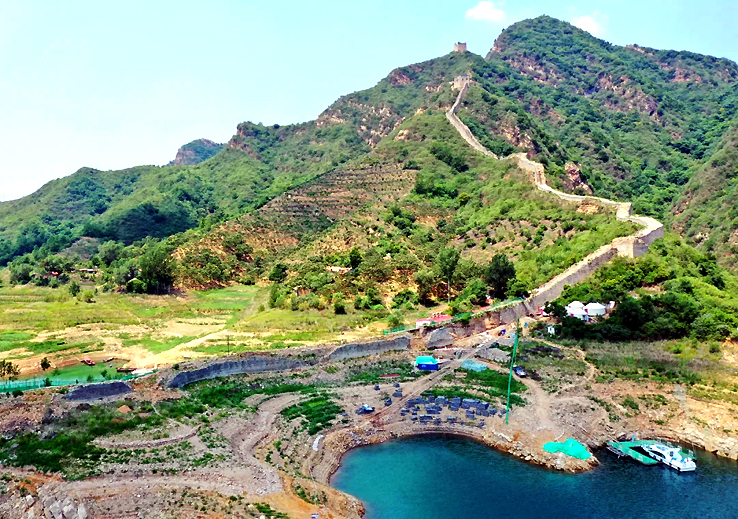 從空中俯瞰,長(zhǎng)城順著逶迤的燕山山脈一直伸向水岸邊,猶如巨龍一頭扎進(jìn)水里。一座水庫的出現(xiàn),不經(jīng)意間營(yíng)造了絕美的“長(zhǎng)城水鄉(xiāng)”。