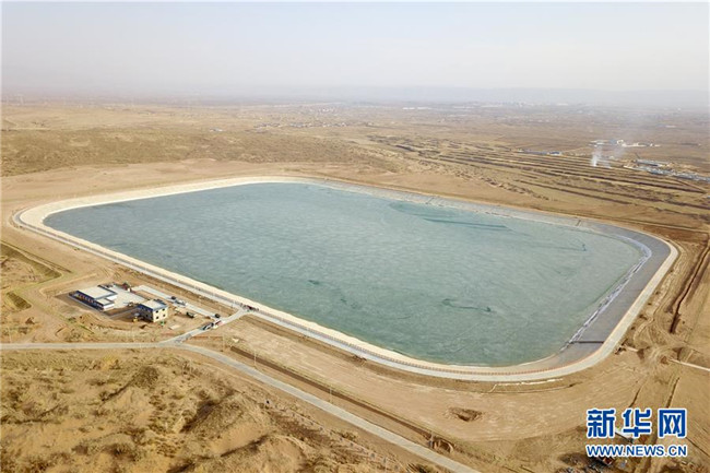 這是古浪縣黃花灘生態(tài)移民區(qū)1號(hào)調(diào)蓄水池(3月5日攝,無人機(jī)照片)。 新華社記者 范培珅 攝