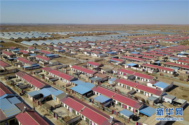 這是古浪縣黃花灘生態(tài)移民區(qū)感恩新村住房及日光溫室大棚(3月10日攝,無人機(jī)照片)。 新華社記者 范培珅 攝