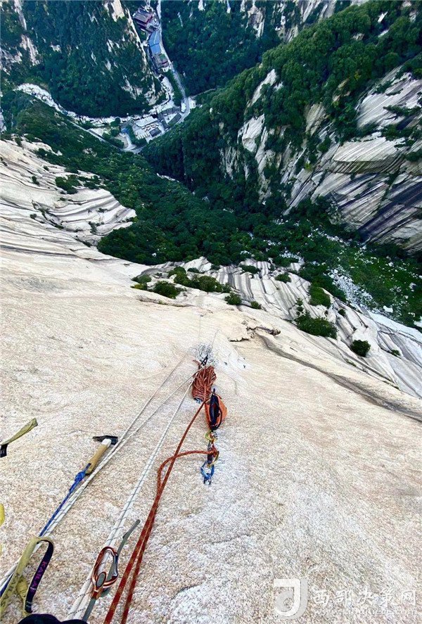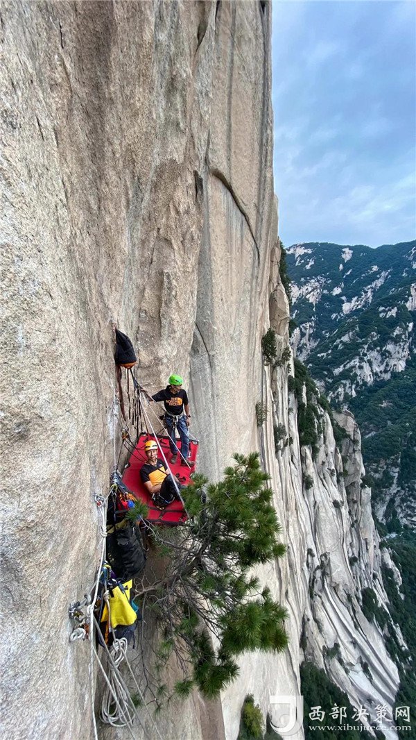 自然巖壁結(jié)組挑戰(zhàn)賽選手成功登頂。挑戰(zhàn)了華山白云峰六百多米的花崗巖大巖壁,并在巖壁上生活了兩天,不僅向大家展示了運(yùn)動員的專業(yè)攀巖技術(shù),更展示了超強(qiáng)的野外生存能力。