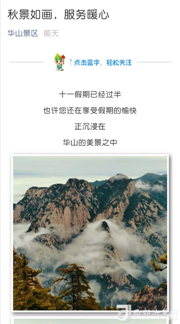 9月30日至10月8日期間,景區(qū)官方微信以歡度雙節(jié)、防疫安全、熱心服務(wù)、旅游攻略等為主題發(fā)布宣傳軟文23篇,累計閱讀量4.2萬人次,分享及轉(zhuǎn)發(fā)量共計1430次;官方微博向游客及時發(fā)布景區(qū)天氣、客流、景色實(shí)況、溫馨提示等景區(qū)度節(jié)綜合信息共計102條,閱讀量高達(dá)101.9萬次,并耐心、細(xì)致解答網(wǎng)友私信、評論共計532條;通過抖音平臺發(fā)布景區(qū)公告、秋日美景、好人好事等短視頻及圖片錦集共計18條,播放量共計 1.4萬次。