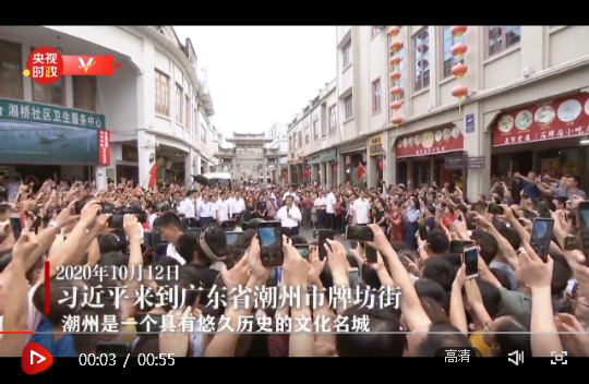 10月12日下午,正在廣東考察的習近平總書記來到潮州古城,看商鋪、問物價,同當地群眾親切交流,了解歷史文化街區(qū)保護和復商復市等情況。