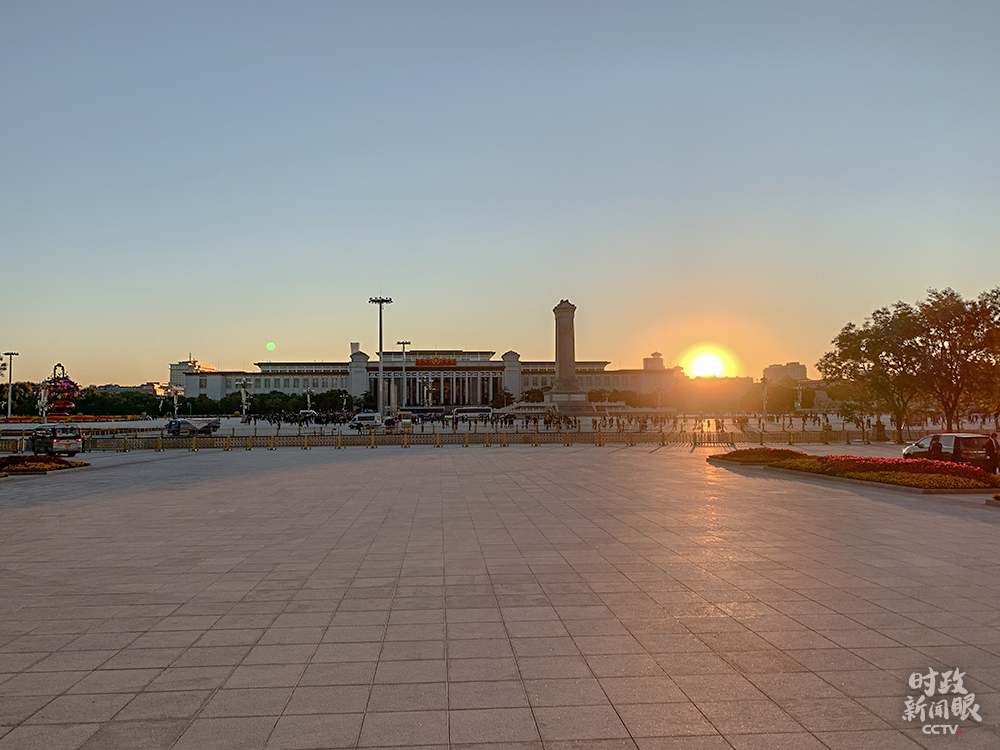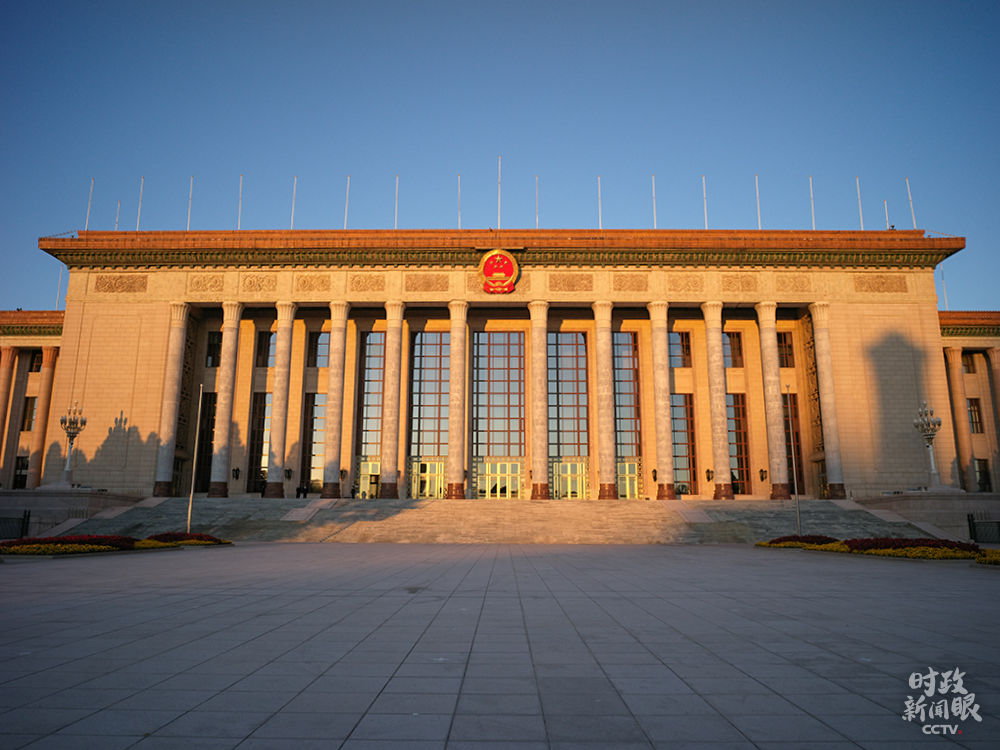 △日出時(shí)刻,人民大會堂(總臺央視記者楊新禹、彭漢明拍攝)