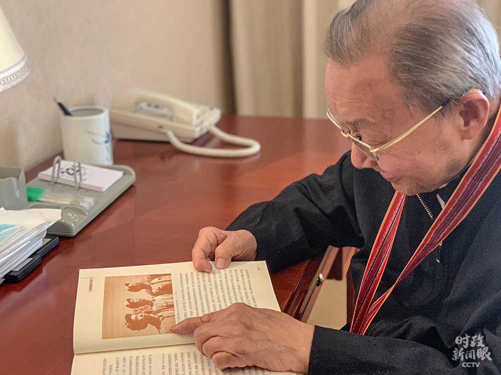 △當(dāng)天出席大會的曾建徽,曾在抗美援朝期間赴朝鮮采訪。這是他正在翻閱當(dāng)年的通訊文稿。(總臺央視記者盧心雨拍攝)