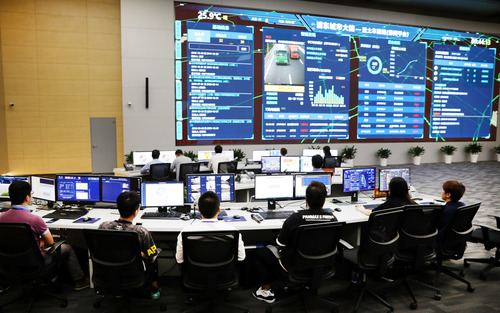 工作人員在上海市浦東新區(qū)城市運(yùn)行管理中心內(nèi)工作(2019年8月31日攝)。新華社記者 方喆 攝