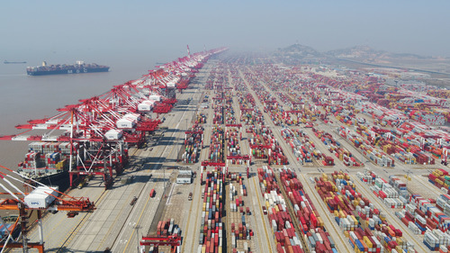 上海洋山港集裝箱碼頭(3月18日攝,無人機(jī)照片)。新華社記者 丁汀 攝