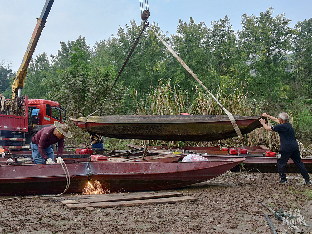 △“長江禁漁”實施后,四川內江東興區(qū)集中拆解漁船,352名漁民全部上岸,轉產(chǎn)轉業(yè)。