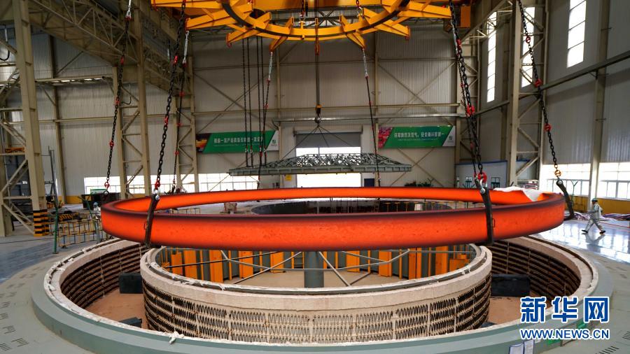 在伊萊特能源裝備股份有限公司,一件環(huán)形大鍛件在軋制中(資料照片)。新華社發(fā)