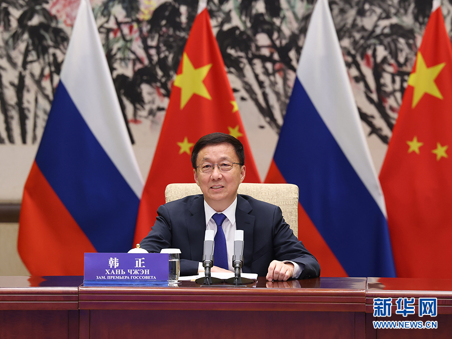 中共中央政治局常委、國務院副總理、中俄能源合作委員會中方主席韓正24日在北京與俄羅斯副總理、委員會俄方主席諾瓦克通過視頻方式共同主持中俄能源合作委員會第十七次會議。