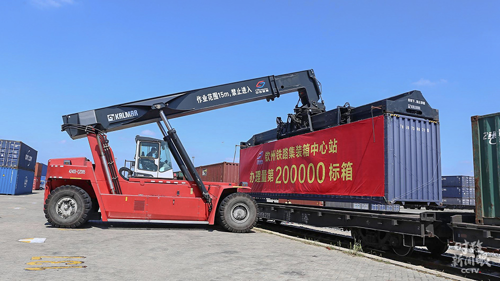 △今年,西部陸海新通道(欽州港)海鐵聯(lián)運(yùn)集裝箱辦理量已突破20萬(wàn)標(biāo)箱,同比增幅達(dá)110%。欽州港是海運(yùn)、鐵路、公路運(yùn)輸無(wú)縫銜接的重要樞紐站。