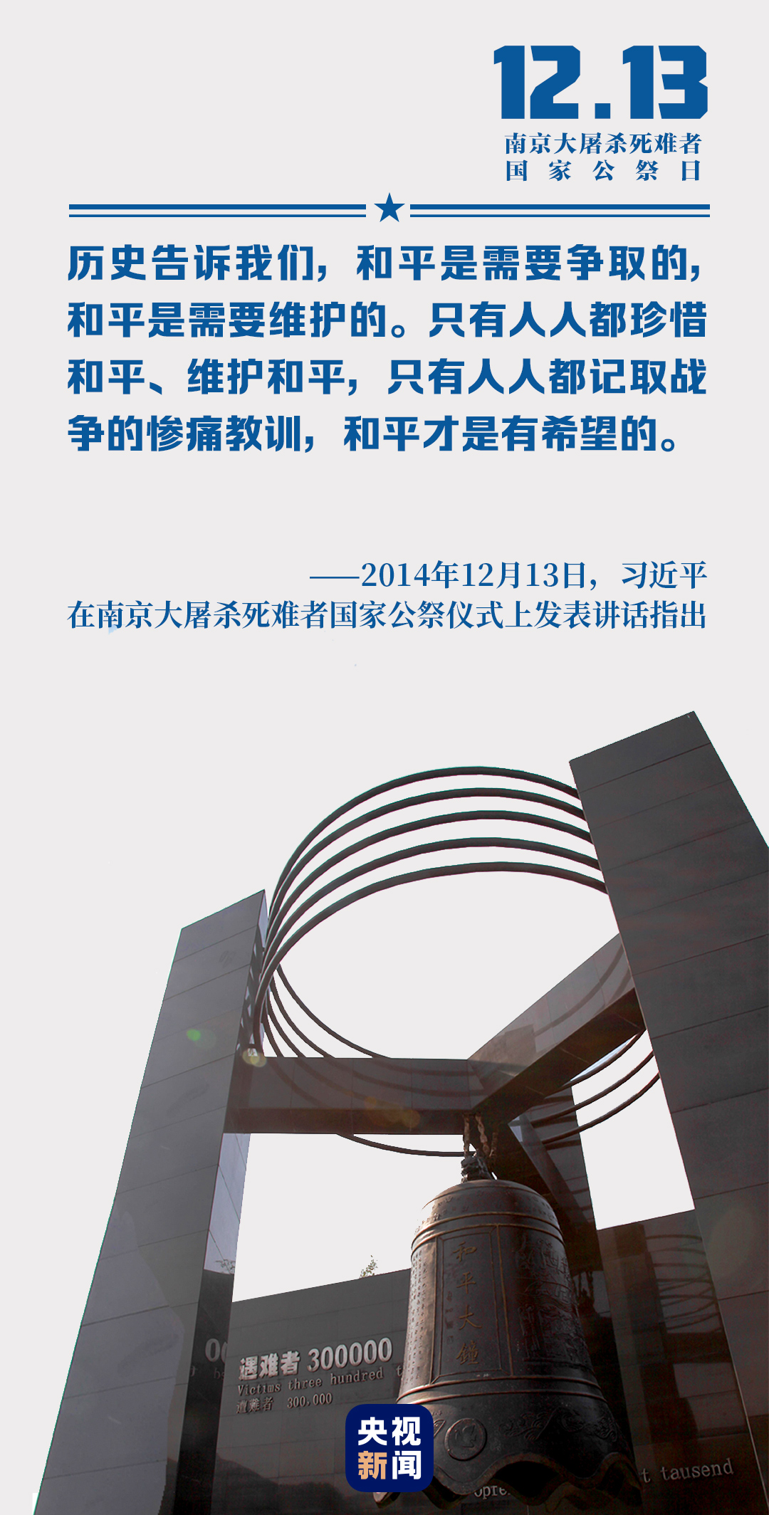 “牢記歷史、不忘過(guò)去,珍愛(ài)和平、開(kāi)創(chuàng)未來(lái)”,6年前的12月13日,習(xí)近平總書(shū)記在公祭儀式上的講話深沉而堅(jiān)定。