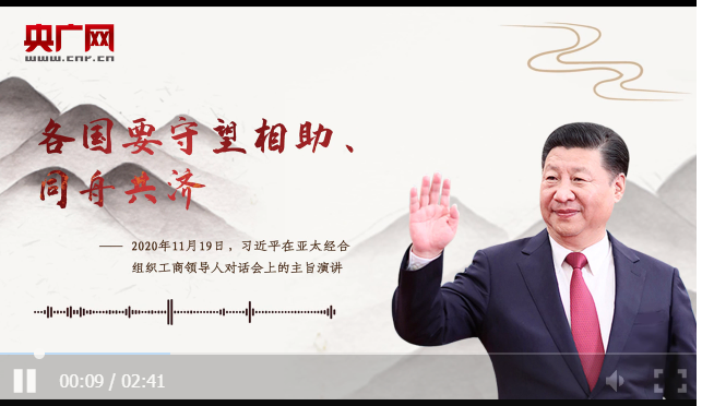 這段話出自2020年11月19日習近平在亞太經合組織工商領導人對話會上的主旨演講。