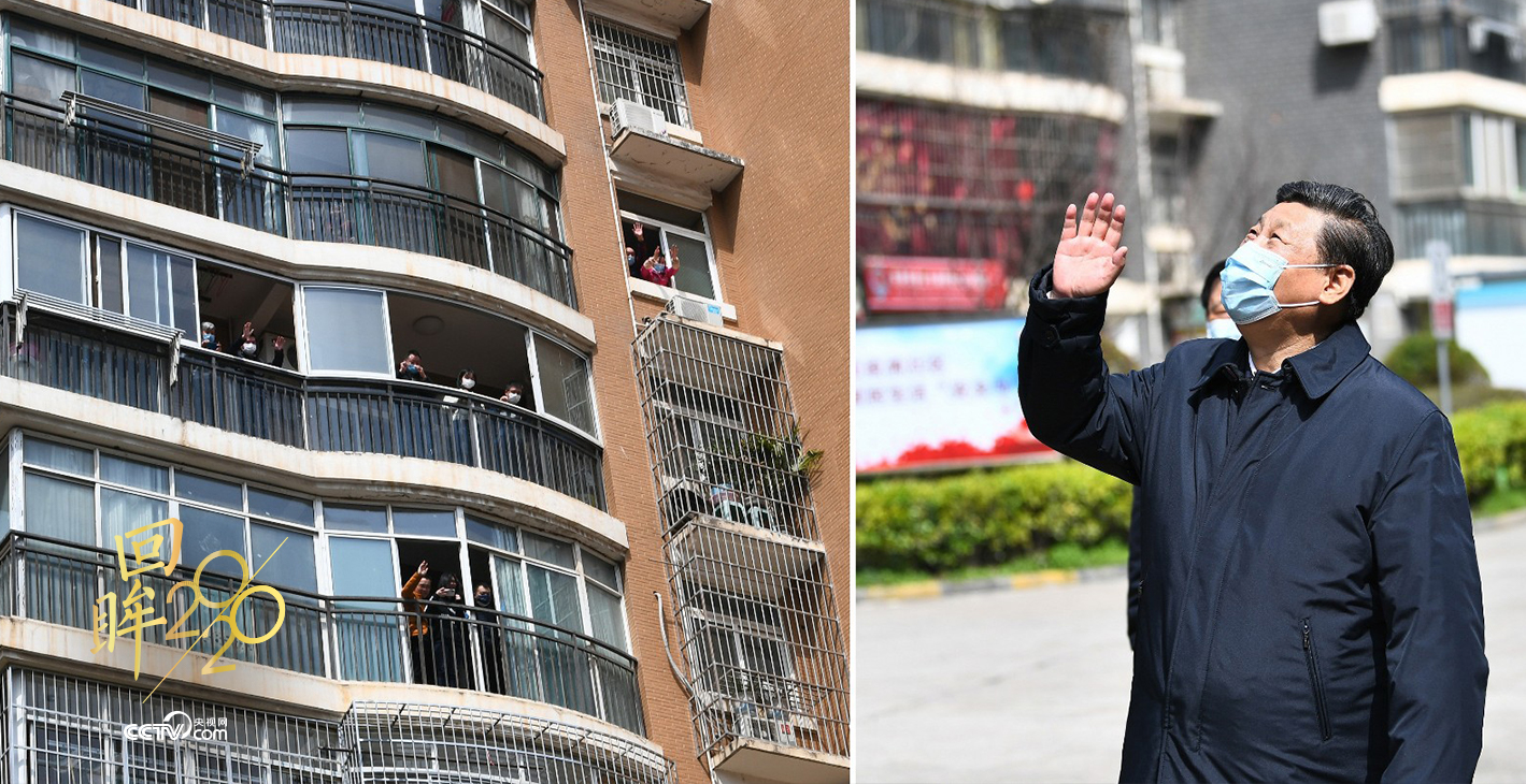 樓上,居家隔離的群眾望向窗外,有的搖著國旗高呼:“中國加油!武漢加油!”樓下,習近平總書記不時駐足,微笑著向大家揮手致意:“大家一起加油,再堅持一下!”目光中飽含關(guān)切。