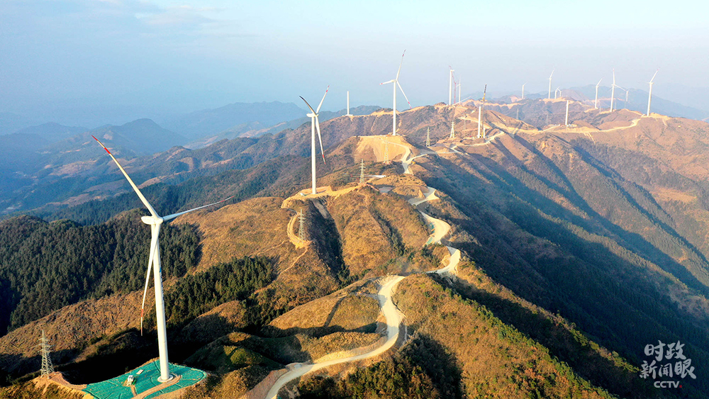 △廣西柳州,三江侗族自治縣大力發(fā)展清潔能源產(chǎn)業(yè),一字排開的風力發(fā)電機成為侗鄉(xiāng)新地標。