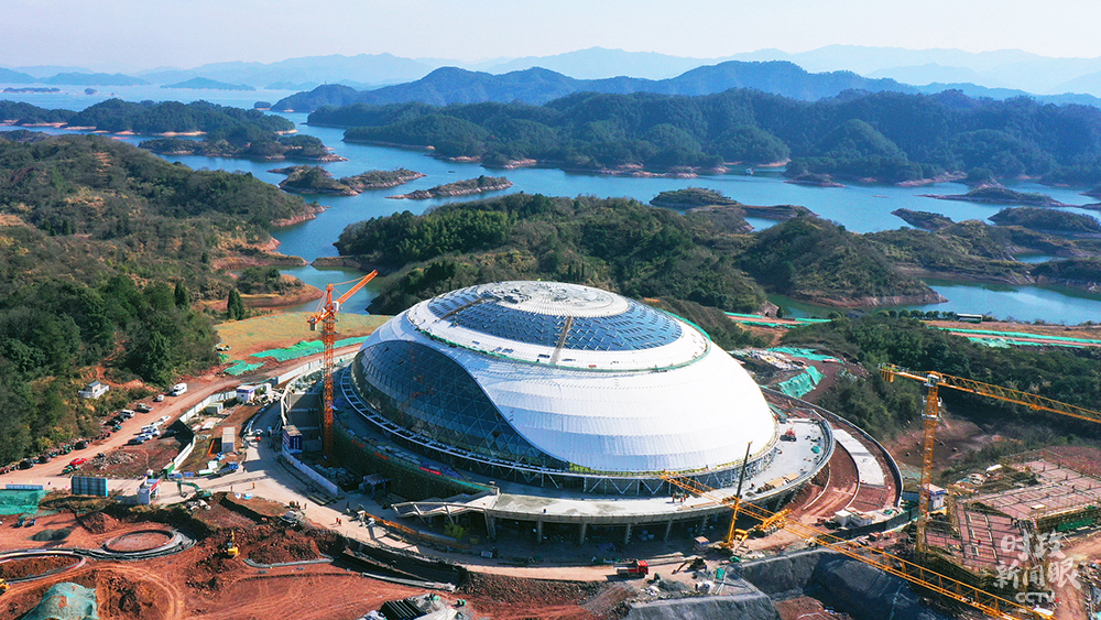△1月10日,浙江杭州,2022年亞運會淳安場地自行車館正加緊建設中,爭取今年3月底前完成竣工驗收。