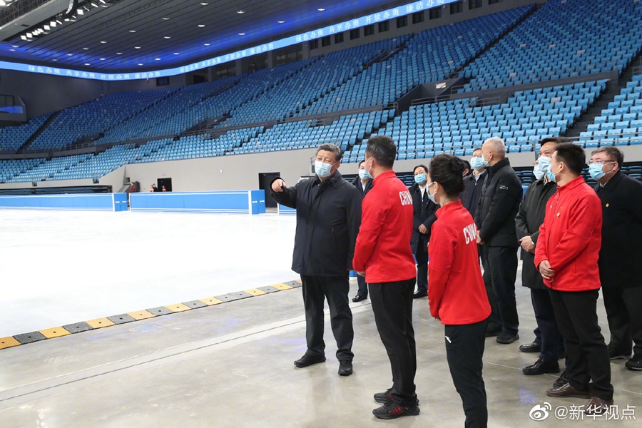 習(xí)近平總書記18日在北京考察冬奧會(huì)、冬殘奧會(huì)籌辦工作。在首都體育館,國家花樣滑冰隊(duì)、短道速滑隊(duì)的運(yùn)動(dòng)員、教練員們向總書記匯報(bào)了訓(xùn)練備戰(zhàn)情況,表達(dá)了勇奪金牌的信心。習(xí)近平說,黨中央很關(guān)心北京冬奧會(huì)、冬殘奧會(huì)籌辦和訓(xùn)練備戰(zhàn)工作,黨和人民給予了強(qiáng)大的物質(zhì)和精神支持。這次來,看到大家盡心盡力,籌辦工作進(jìn)展順利,訓(xùn)練備戰(zhàn)效果明顯,我感到很欣慰,我對(duì)辦好這一屆盛會(huì)充滿信心。(文字記者:張曉松、朱基釵 攝影記者:鞠鵬、王曄、姚大偉)