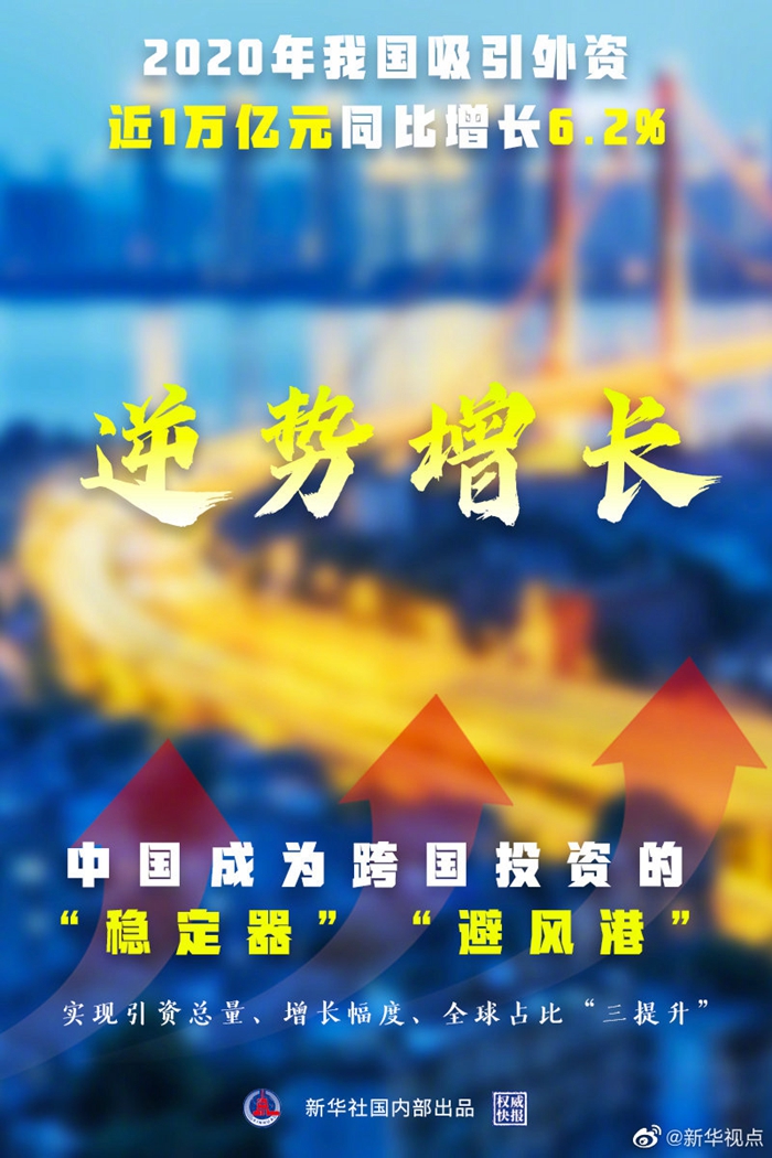 原標(biāo)題:權(quán)威快報(bào)|逆勢創(chuàng)新高!2020我國吸收外資近1萬億元,同比增長6.2%