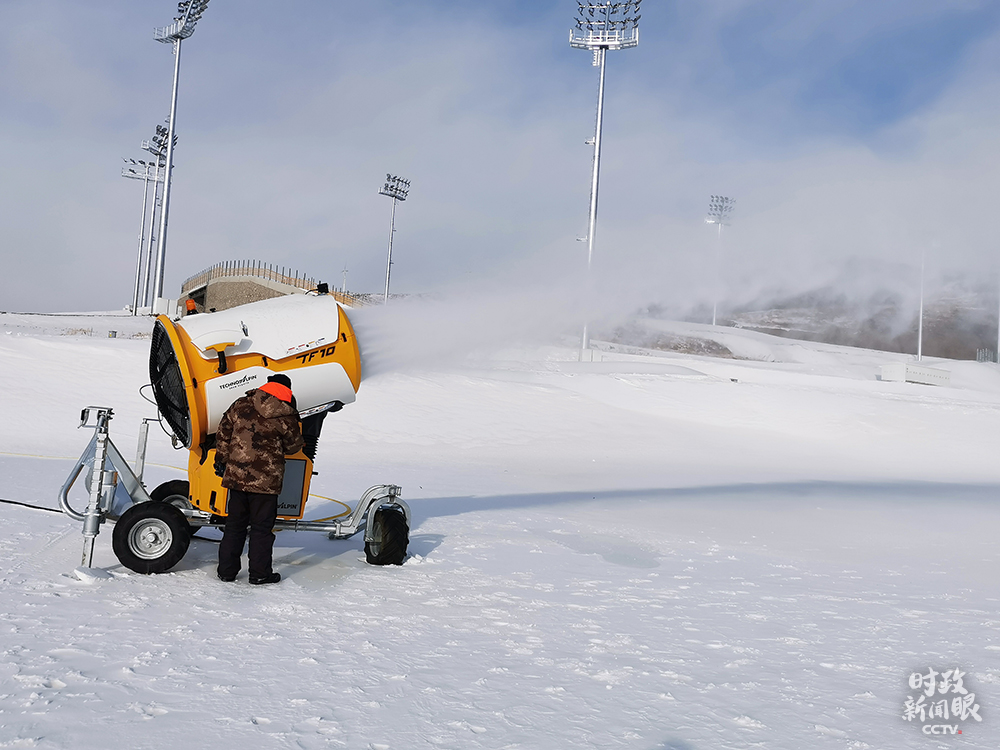 △張家口賽區(qū),國家冬季兩項中心造雪現(xiàn)場。(總臺央廣記者劉會民拍攝)