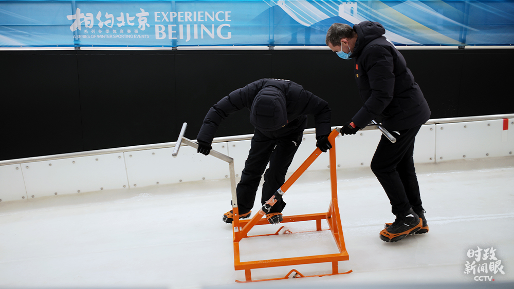 △延慶賽區(qū)雪車雪橇中心,教練為雪車訓練切割出發(fā)槽。(總臺央視記者王哈男拍攝)