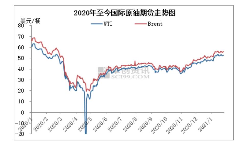 2020年至今國際原油期貨走勢 來源:卓創(chuàng)資訊