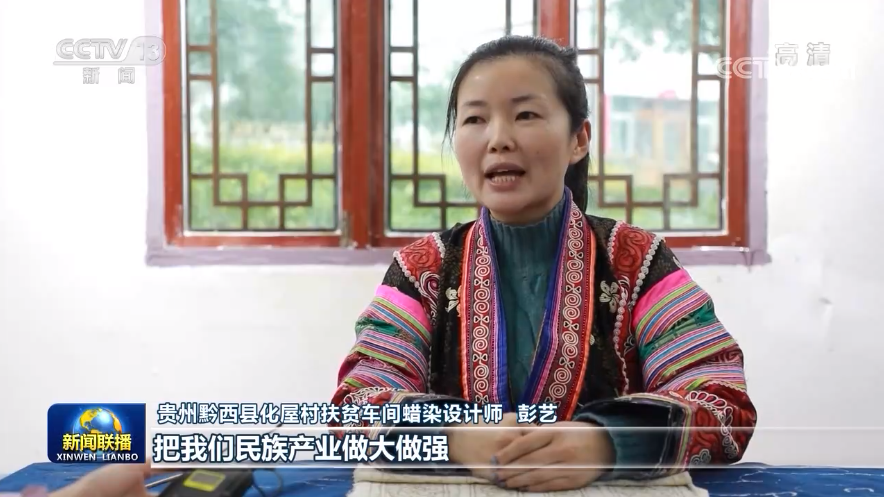 貴州黔西縣化屋村扶貧車間蠟染設(shè)計師 彭藝:把我們民族產(chǎn)業(yè)做大做強(qiáng),讓我們苗族同胞的生活,過得像我們蠟染刺繡一樣精彩。