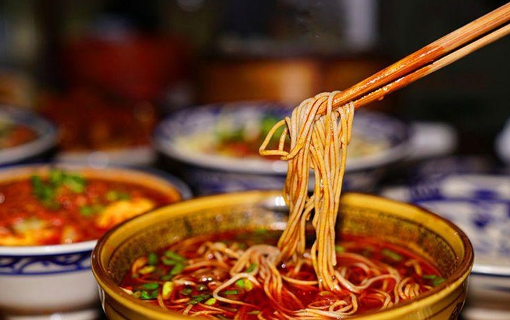 羊肉饸饹又稱蕎面饸饹,是北方面食三絕之一,與蘭州拉面、山西刀削面齊名,制作羊肉饸饹最重要的是羊肉臊子,選上好肥瘦相間的羊肉,切成細(xì)丁,小火煸炒,浸出油脂,加入花椒大料,慢火燉制數(shù)小時,又以羊油和食用油燒制成紅油辣子入臊子湯。接著制作饸饹,饸饹以蕎面為主,摻入一定比例的小麥粉,加入蒿子增加韌性,和好的面團(tuán)通過有漏眼的“床子”壓成面條,直接入沸水煮熟,經(jīng)冷水過涼,淋水入碗回?zé)?,澆上羊肉臊子湯,漂一層辣子紅油,瞬間香味撲鼻,讓人垂涎欲滴。吃的時候滴入香醋,再加上一個芝麻燒餅,肉爛湯香,味道酸辣,光滑筋道,羊肉、饸饹、燒餅的香味交織在一起,在唇齒間彌漫,讓人回味無窮。