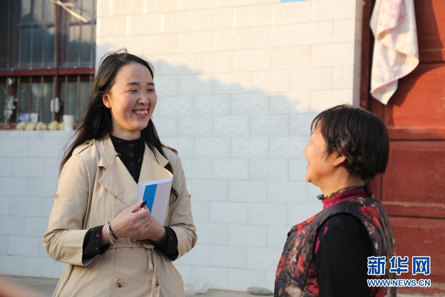 2月23日,在甘肅省隴南市徽縣水陽鎮(zhèn)石灘村,全國人大代表梁倩娟(左)同村民茍明交流?!⌒氯A社記者 張智敏 攝