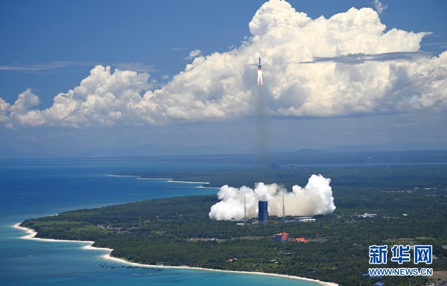 2020年7月23日12時(shí)41分,我國在海南島東北海岸中國文昌航天發(fā)射場,用長征五號遙四運(yùn)載火箭將我國首次火星探測任務(wù)“天問一號”探測器發(fā)射升空。新華社記者 郭程 攝
