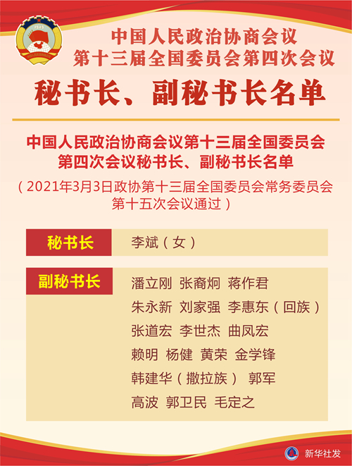 中國(guó)人民政治協(xié)商會(huì)議第十三屆全國(guó)委員會(huì)第四次會(huì)議秘書長(zhǎng)、副秘書長(zhǎng)名單