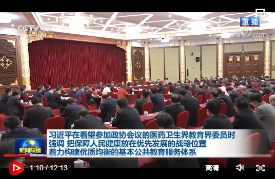 中共中央總書記、國家主席、中央軍委主席習(xí)近平3月6日下午看望了參加全國政協(xié)十三屆四次會議的醫(yī)藥衛(wèi)生界、教育界委員,并參加聯(lián)組會,聽取意見和建議。他強(qiáng)調(diào),要把保障人民健康放在優(yōu)先發(fā)展的戰(zhàn)略位置,堅持基本醫(yī)療衛(wèi)生事業(yè)的公益性,聚焦影響人民健康的重大疾病和主要問題,加快實施健康中國行動,織牢國家公共衛(wèi)生防護(hù)網(wǎng),推動公立醫(yī)院高質(zhì)量發(fā)展,為人民提供全方位全周期健康服務(wù)。要全面貫徹黨的教育方針,堅持社會主義辦學(xué)方向,堅持教育公益性原則,著力構(gòu)建優(yōu)質(zhì)均衡的基本公共教育服務(wù)體系,建設(shè)高質(zhì)量教育體系,辦好人民滿意的教育,培養(yǎng)德智體美勞全面發(fā)展的社會主義建設(shè)者和接班人。