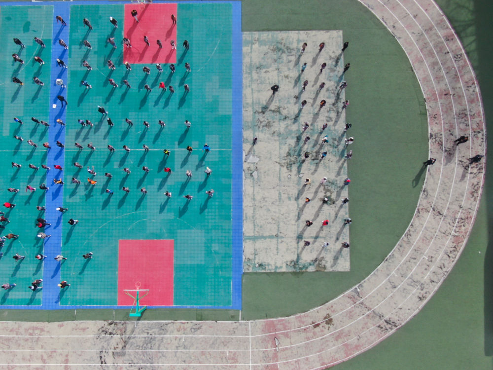 ↑ 在青海省玉樹藏族自治州八一孤兒學(xué)校,學(xué)生們在進行課間活動(2020年4月3日攝)。 新華社記者 張龍 攝