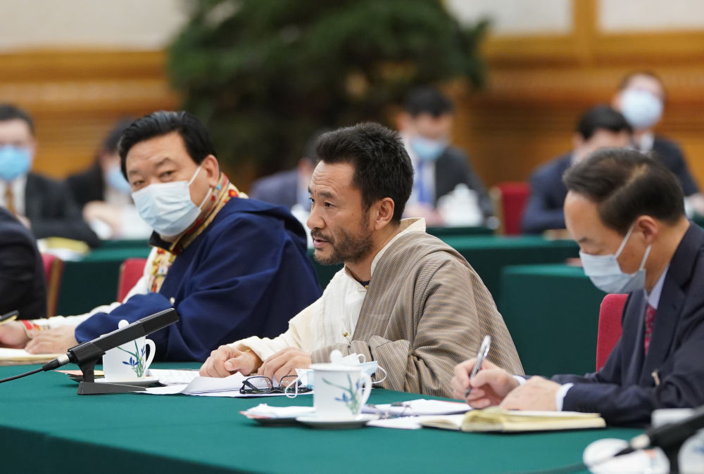 ↑ 3月7日,在參加十三屆全國人大四次會議青海代表團審議時,扎西多杰就玉樹災(zāi)后重建新變化發(fā)言。新華社記者李學(xué)仁攝