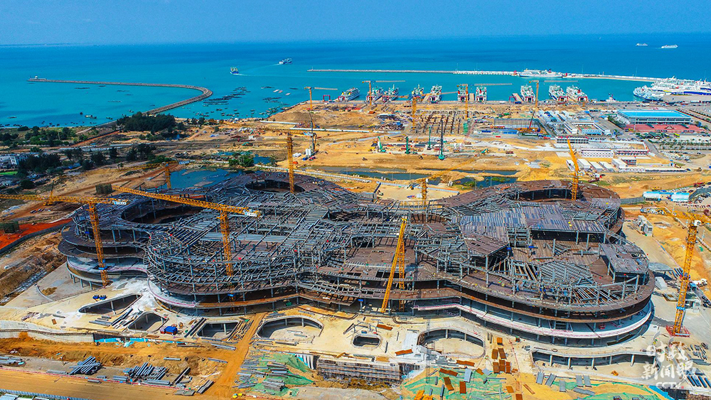 △2021年3月5日,建設(shè)中的??趪?guó)際免稅城項(xiàng)目,未來(lái)將成為??谛碌貥?biāo)。