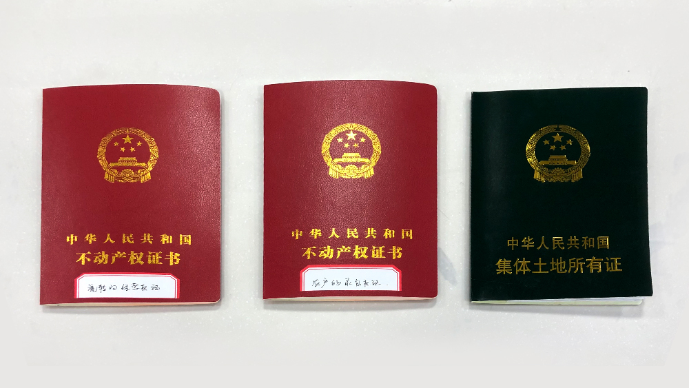 △陳列在沙縣農(nóng)村產(chǎn)權(quán)交易中心的流轉(zhuǎn)經(jīng)營(yíng)權(quán)證、承包權(quán)證和集體土地所有證。(總臺(tái)央視記者許永松拍攝)