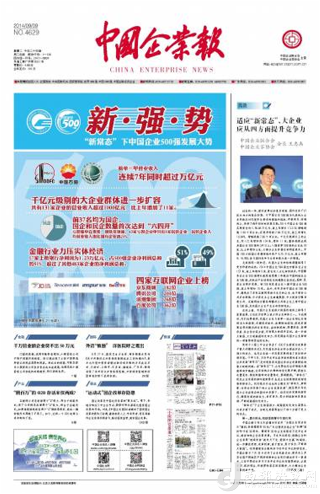 《中國企業(yè)報(bào)》是由中國企業(yè)聯(lián)合會、中國企業(yè)家協(xié)會主管主辦,是中國唯一以企業(yè)和企業(yè)家為報(bào)道核心的中央級媒體?!吨袊髽I(yè)報(bào)》是一張專為中國企業(yè)創(chuàng)辦的報(bào)紙。1988年1月4日,由國家經(jīng)委主辦,中國企業(yè)管理協(xié)會承辦的《中國企業(yè)報(bào)》正式創(chuàng)刊。陳云同志為報(bào)紙題寫了報(bào)頭,鄧力群任報(bào)社名譽(yù)顧問,袁寶華任報(bào)社名譽(yù)社長。從1988年創(chuàng)辦至今,秉承“面向企業(yè),為企業(yè)服務(wù)”的辦報(bào)宗旨,親歷和記錄著中國企業(yè)的改革進(jìn)程,同時伴隨著中國企業(yè)的發(fā)展壯大而不斷成長。經(jīng)過20多年的實(shí)踐探索,在報(bào)道企業(yè)新聞、推動企業(yè)改革、維護(hù)企業(yè)權(quán)益、促進(jìn)企業(yè)發(fā)展等方面,逐步形成了自身的風(fēng)格和特色,專業(yè)性、權(quán)威性日益得到了企業(yè)界和新聞界的認(rèn)同。