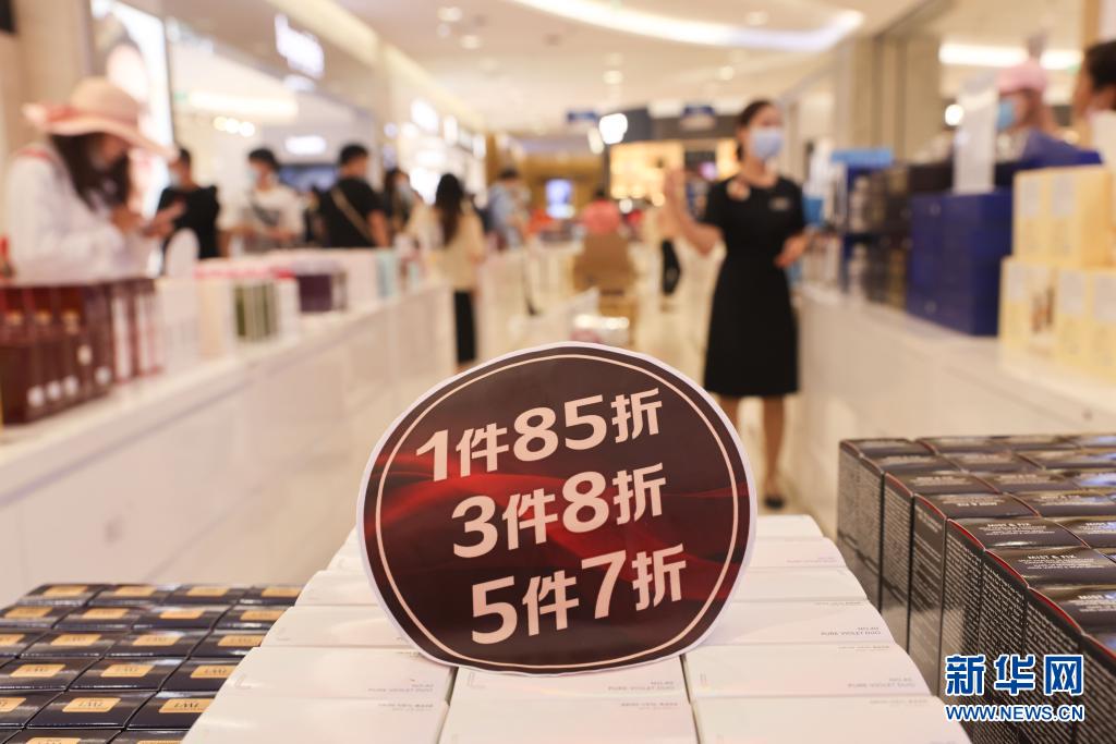 3月25日,消費(fèi)者在??谌赵聫V場(chǎng)免稅店購(gòu)物。新華社記者 張麗蕓 攝