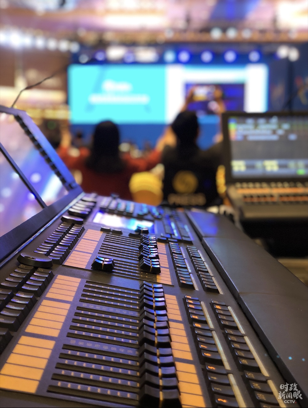 △開幕式現(xiàn)場的調(diào)音設(shè)備(總臺央廣記者劉樂拍攝)