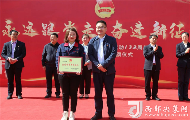 西部決策網(wǎng)訊(韓宗憲)4月29日,西鳳集團(tuán)公司團(tuán)委在辦公樓前廣場舉行了“永遠(yuǎn)跟黨走 奮進(jìn)新征程”紀(jì)念五四運(yùn)動(dòng)102周年暨青年突擊隊(duì)授旗儀式。共青團(tuán)寶雞市委書記高婷,西鳳集團(tuán)公司黨委副書記、總裁楊宏亮,黨委委員、股份公司副董事長、總經(jīng)理賈智勇,黨委副書記郭拴新,黨委委員、副總裁楊會(huì)軍,紀(jì)委書記、監(jiān)察專員帖樹紅,以及公司相關(guān)職能部門負(fù)責(zé)人,共青團(tuán)工作支持者,共青團(tuán)干部和團(tuán)員青年代表共200多人參加了儀式,集團(tuán)公司工會(huì)主席陳軍紅主持儀式。