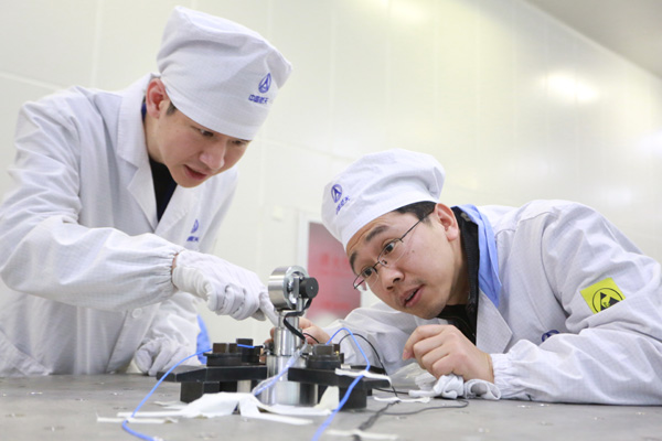 △中國航天科技集團公司的青年科研人員在做產(chǎn)品試驗。