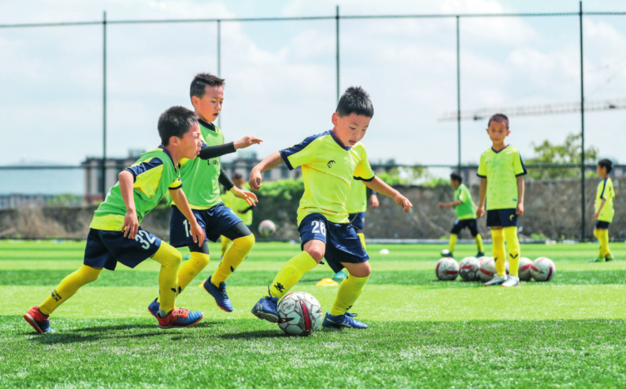 大連龍卷風(fēng)俱樂部U8年齡組的小球員在進(jìn)行訓(xùn)練(2020年5月19日攝) 潘昱龍攝/本刊
