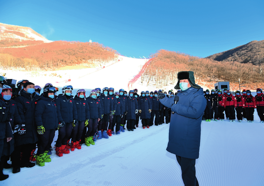 1月18日至20日,中共中央總書記、國家主席、中央軍委主席習(xí)近平在北京、河北考察,并主持召開北京2022年冬奧會和冬殘奧會籌辦工作匯報會。這是18日下午,習(xí)近平在位于北京市延慶區(qū)的國家高山滑雪中心,同賽場保障工作人員、運動員、教練員等親切交流。 岳月偉攝 / 本刊