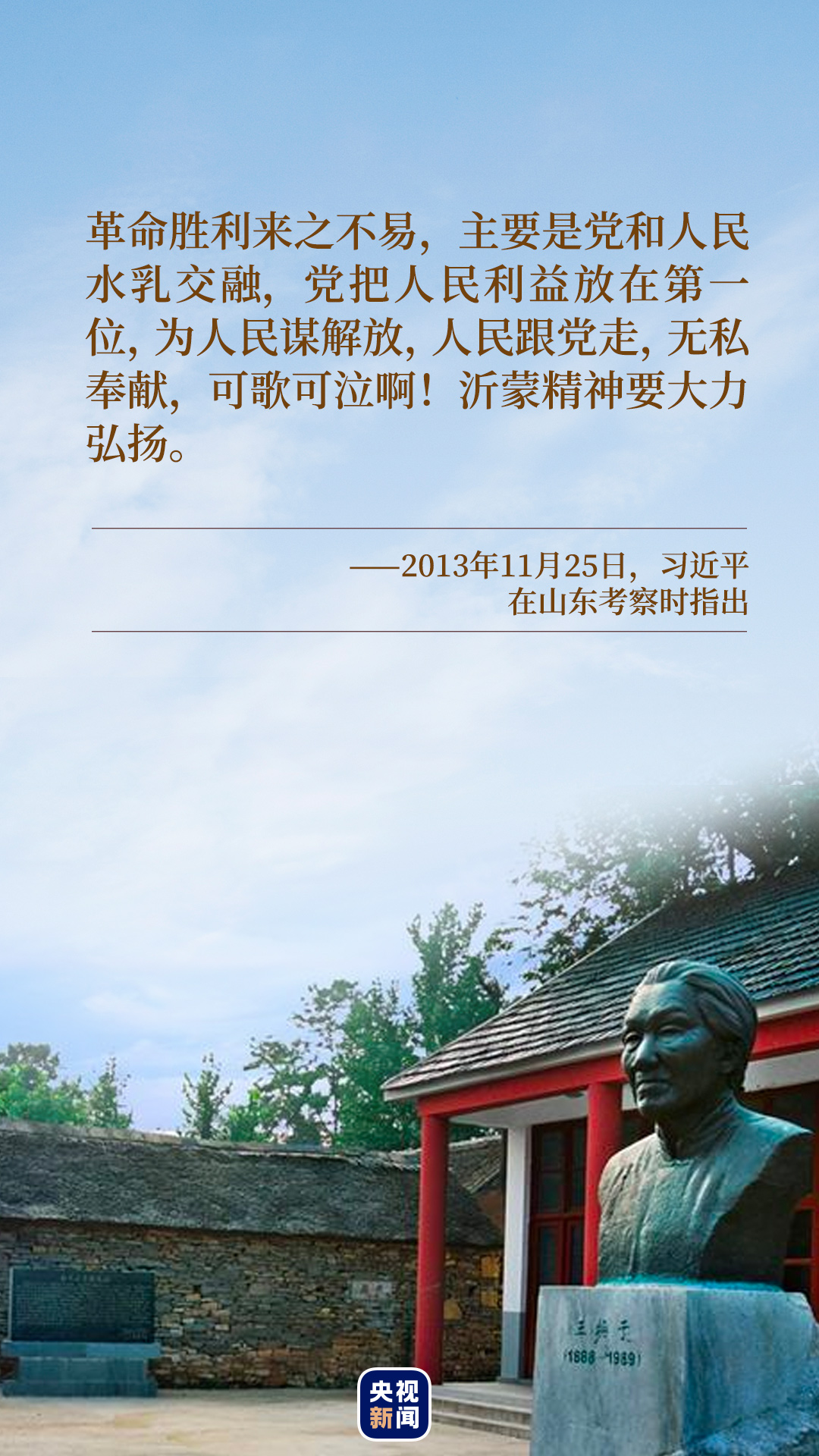 “在沂蒙這片紅色土地上,誕生了無數(shù)可歌可泣的英雄兒女,沂蒙六姐妹、沂蒙母親、沂蒙紅嫂的事跡十分感人。”習近平總書記深情地說。2013年11月25日,習近平在視察山東沂蒙革命老區(qū)臨沂期間,專程前往華東革命烈士陵園,向革命烈士紀念塔敬獻花籃并參觀沂蒙精神展。