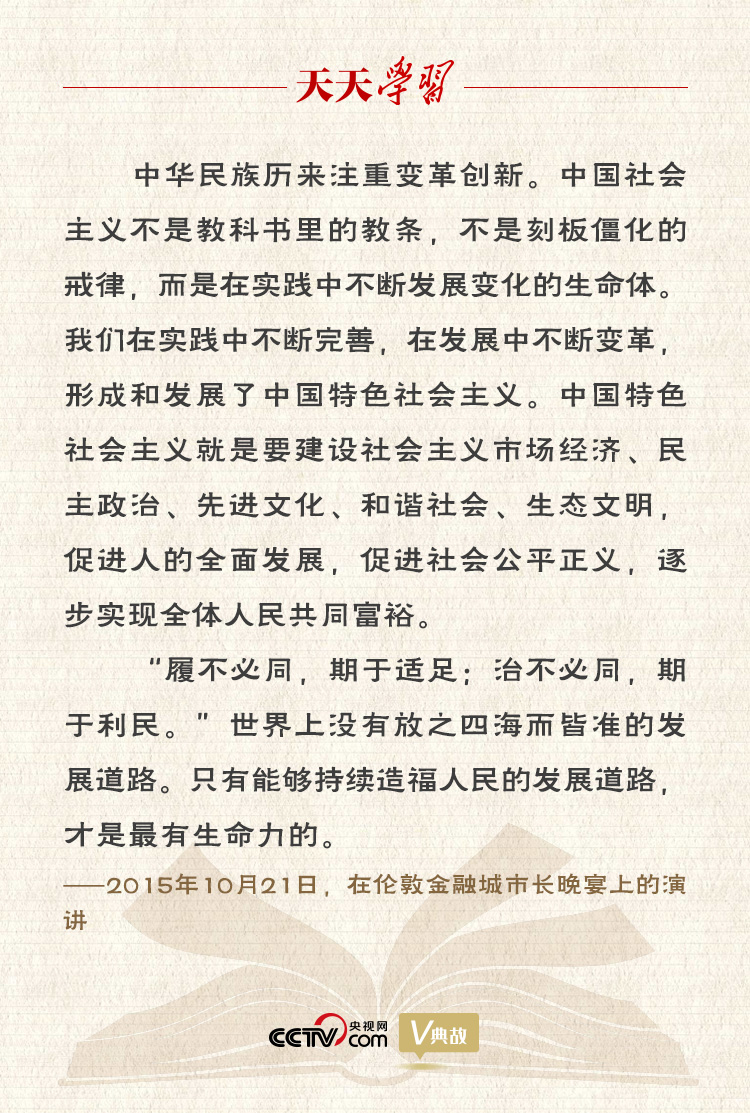 近代以后,中國飽受戰(zhàn)亂動蕩,歷經長達一個多世紀的磨難。100多年前,中國人民開始“睜眼看世界”,努力探尋救國救民的道路。中國民主革命的先行者孫中山先生曾經到英國求學。在經歷君主立憲制、議會制、總統(tǒng)制等的失敗嘗試后,中國最終選擇了社會主義道路。這是歷史的選擇、人民的選擇。中國共產黨以馬克思主義為指導,領導中國人民經過28年的浴血奮戰(zhàn)最終取得革命勝利、實現(xiàn)民族獨立和人民解放。新中國成立以來,我國社會各方面都發(fā)生了巨大變化,尤其是改革開放以來,我國經濟快速發(fā)展,綜合國力進一步增強,人民生活不斷改善,社會各項事業(yè)全面進步。社會主義在中國顯示出蓬勃生機和強大活力,中國用幾十年時間走完了發(fā)達國家?guī)装倌曜哌^的發(fā)展歷程。這一切充分說明,中國人民正走在正確的道路上。