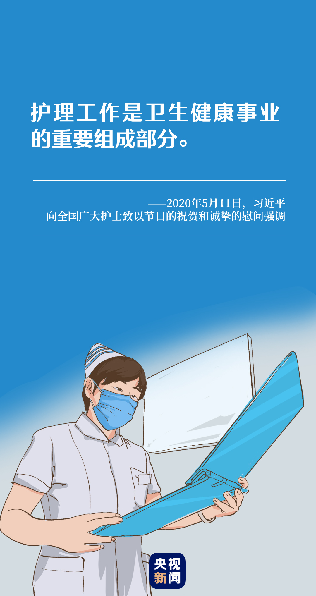 習近平總書記十分關(guān)心護士群體,要求各級黨委和政府關(guān)心愛護廣大護士,全社會都要理解和支持護士。