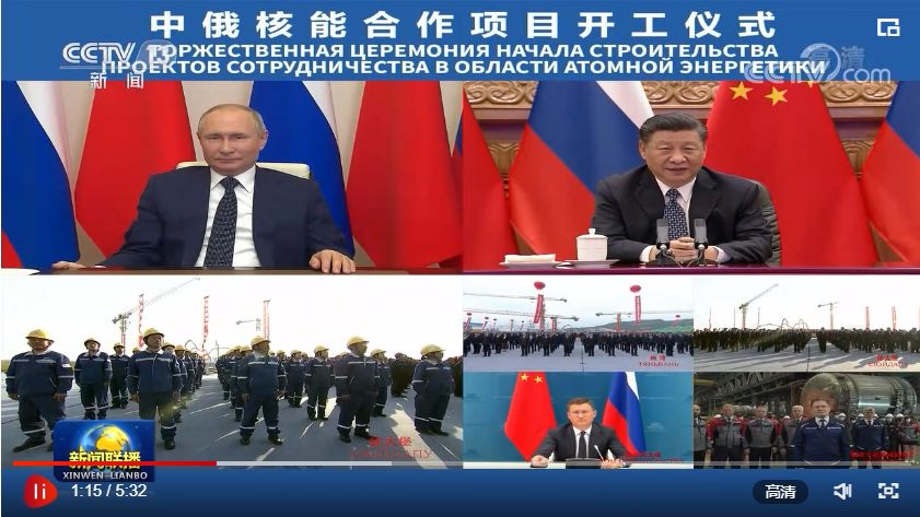 聯(lián)播+“今年是《中俄睦鄰友好合作條約》簽署20周年。我同普京總統(tǒng)商定,將在更高水平、更廣領(lǐng)域、更深層次推進(jìn)雙邊關(guān)系向前發(fā)展。”5月19日,習(xí)近平主席在北京通過視頻連線,同俄羅斯總統(tǒng)普京共同見證兩國(guó)核能合作項(xiàng)目——田灣核電站和徐大堡核電站開工儀式。